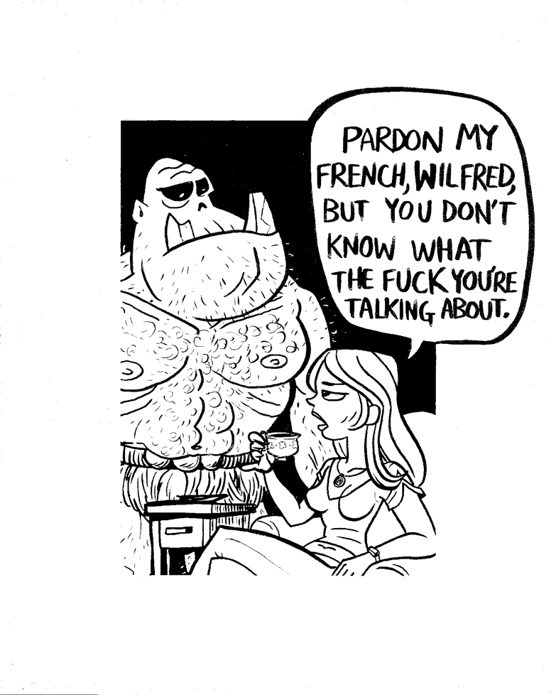 My final (and favorite) piece for the Vancouver Comic Jam Art Show! This is just a snippet of it – the full panel has some gore and a bit of nudity in it, so be warned; this is not one for the kids or the nanas of the world. It shows Tatterhood fighting a variety of (mean) trolls (and while not all trolls are mean or evil, these ones most definitely are). The full image can be seen here, and the process of the piece can be seen here. This is a scene that could hypothetically be in my hypothetical graphic novel should I ever hypothetically get working on it.